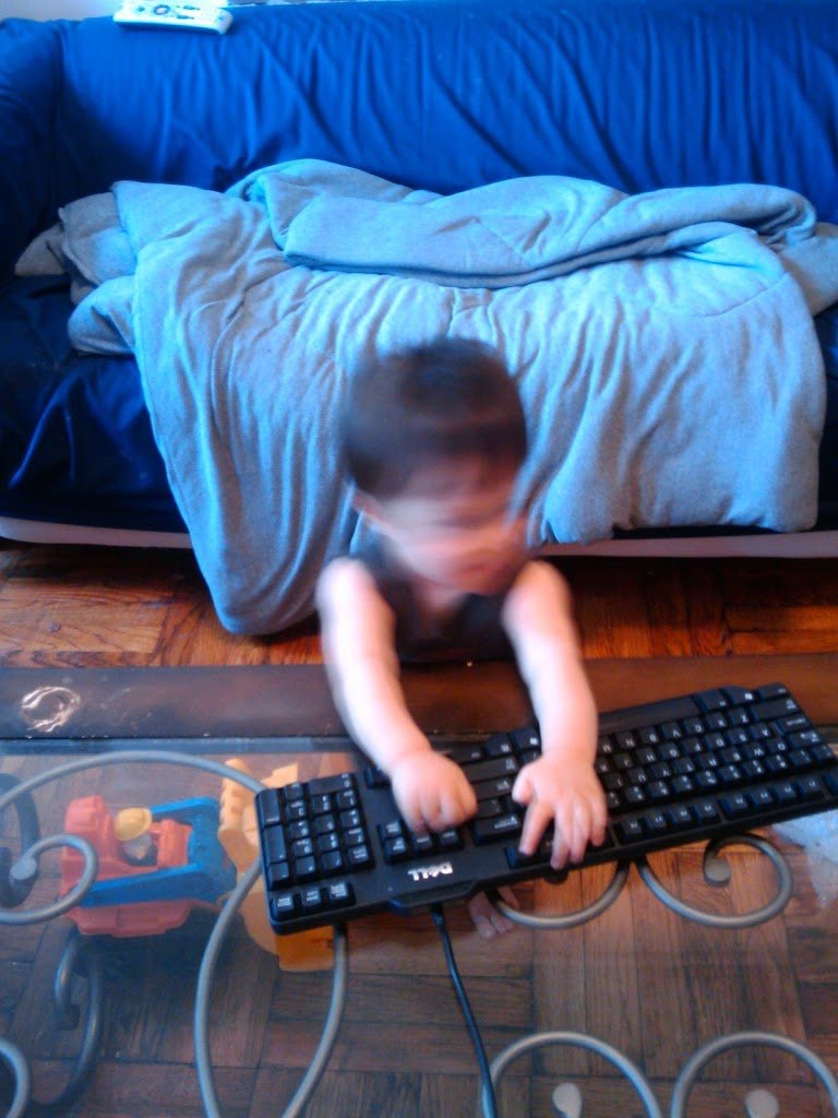 Here is an example. I attempted to take a photo of my son typing on a